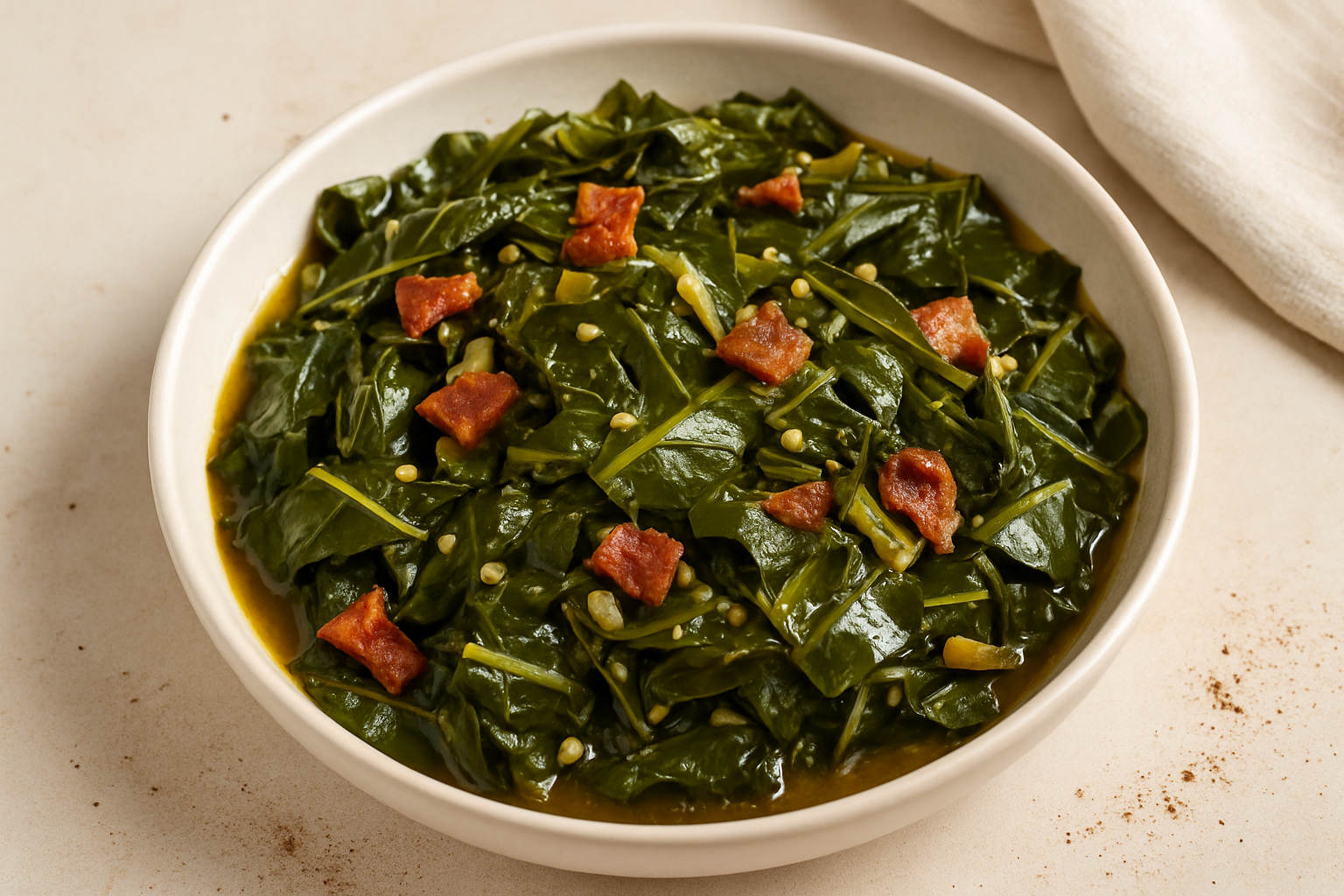 Slow-braised Southern collard greens cooked until tender with savory seasonings. A flavorful, comforting Thanksgiving side made the traditional way.